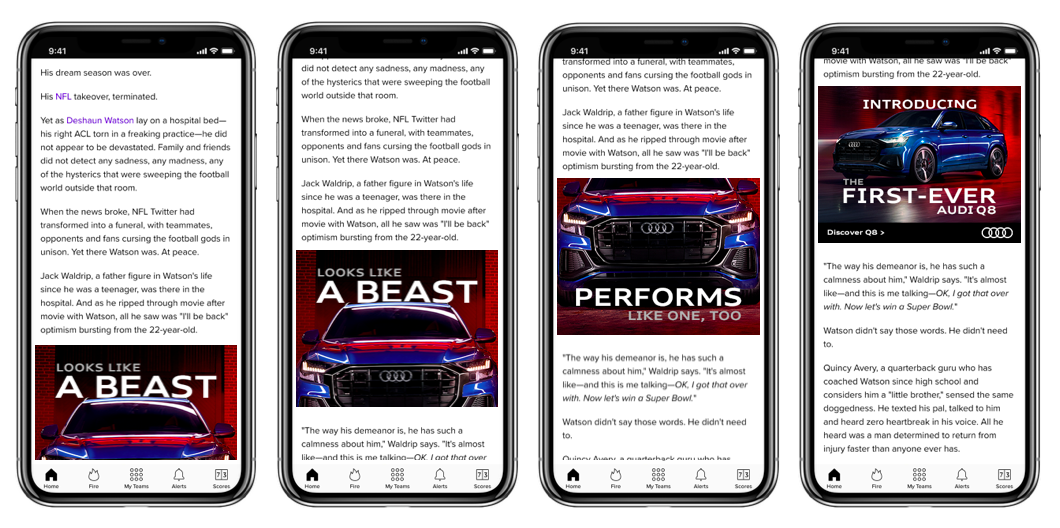 Mobile units on Bleacher Report highlighted additional messaging about the Audi Q8.