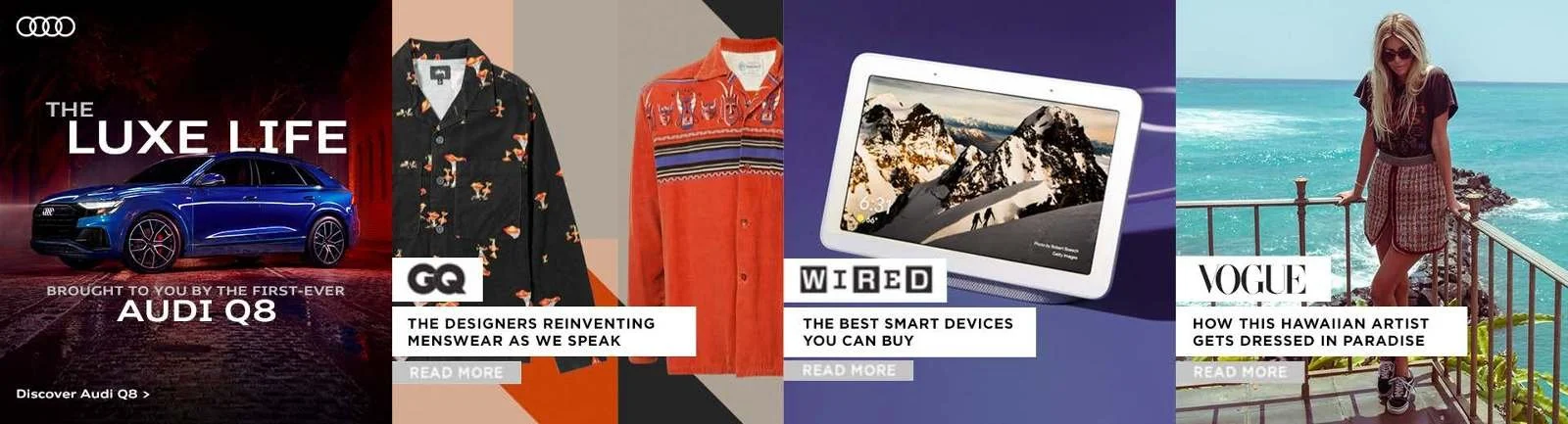 To give the Q8 additional credence as a design-forward SUV, we also created a custom unit that ran on Condé Nast sites that showcased complementary articles from publications like Vogue and Wired.